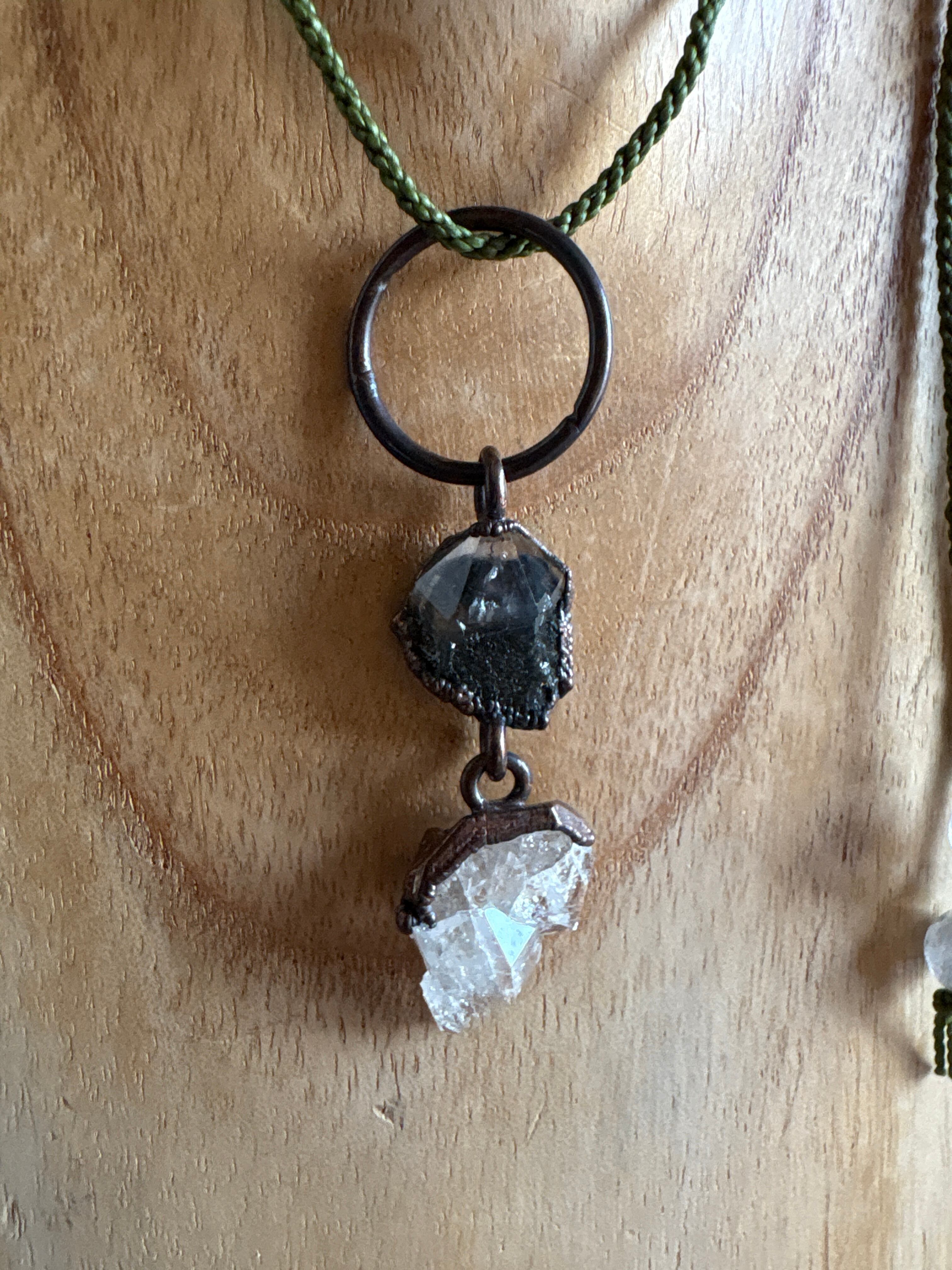 祖母クオーツ スモーキーシトリン原石と四万十川産のオイルインクオーツの組み合わせのペンダントのご紹介です。